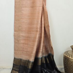 Peach with Black- Pure Tussar Ghicha Silk Saree