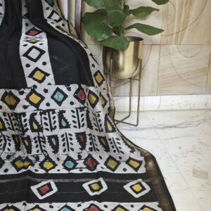 Maheshwari Silk – Black Batik handblock printed