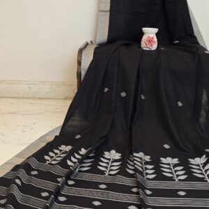 Handloom Jamdani Saree -Excquisite black Lotus motifs