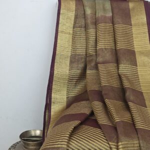 Linen Tissue Saree – Goldish olive green and Brown -Handloom