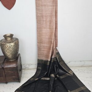 Peach with Black- Pure Tussar Ghicha Silk Saree