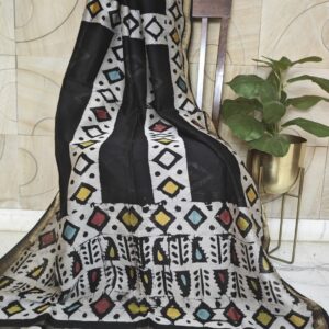 Maheshwari Silk – Black Batik handblock printed
