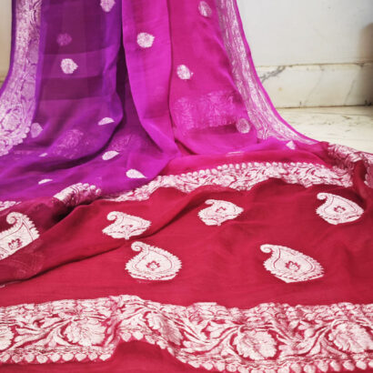 Banarasi sarees originated in the 14th century during the Mughal era. Banarasi sarees are a symbol of cultural pride and are often worn during festivals, religious ceremonies, and special occasions.
