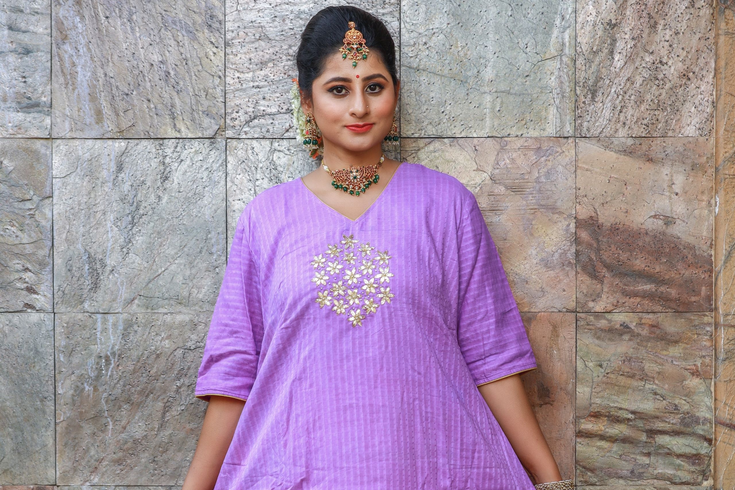 Details – Purple Slub cotton Kurti – Gotta Patti Work.