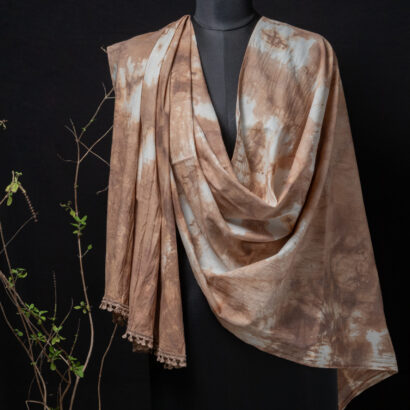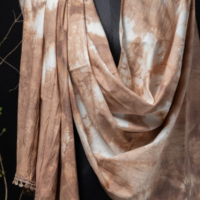 Herbal dyed pure cotton dupatta , skin friendly.The colour brown is gained from Vettiver herb. The shibori technique is used to create the texite design . This product make you feel luxury when you wrap around.